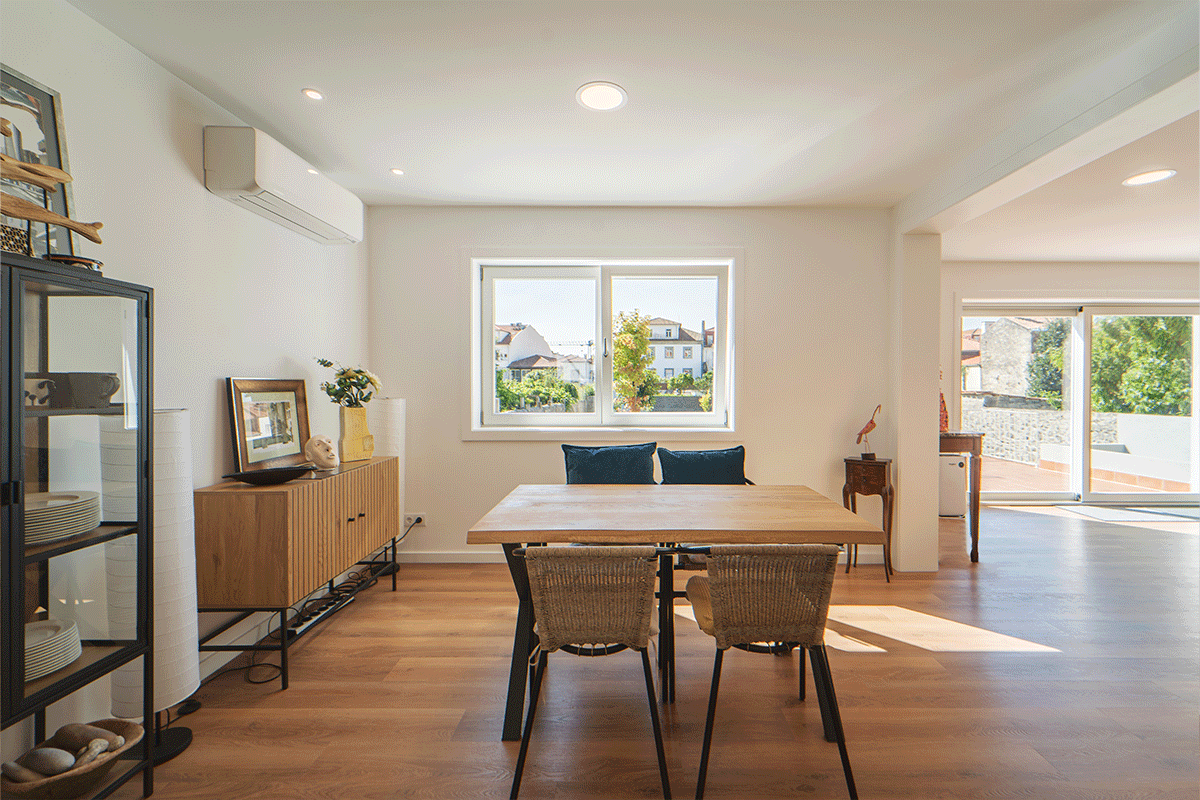 A casa está equipada com sistema de aquecimento a pellets, ar condicionado e bomba de calor para aquecimento de águas, garantindo conforto em todas as estações. Os detalhes como a iluminação LED, vidros duplos e estores elétricos contribuem para uma maior eficiência energética, enquanto a excelente exposição solar proporciona luminosidade natural durante todo o dia.