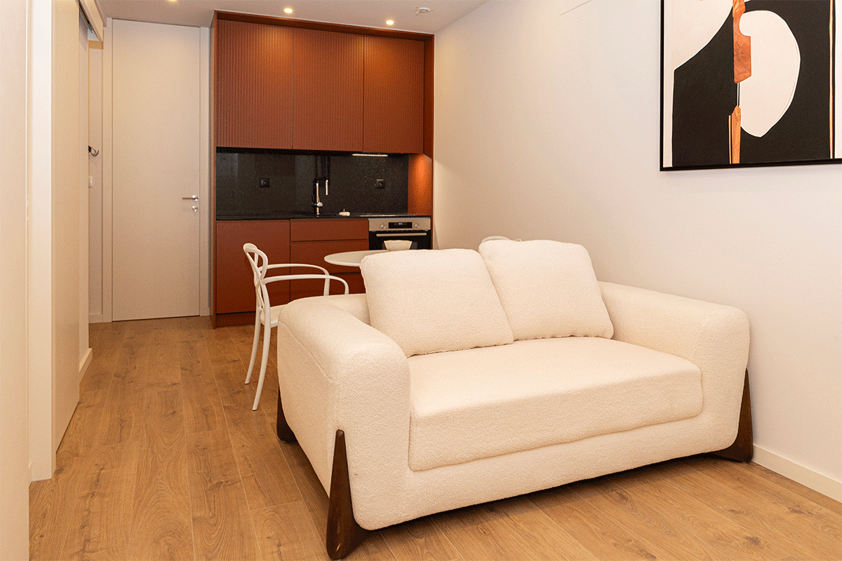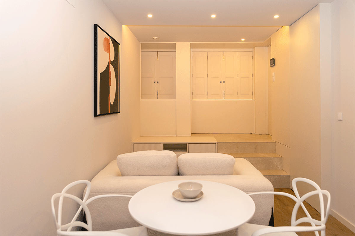 Com a sua dimensão acolhedora, este apartamento destaca-se pelo seu design inteligente e pela decoração cuidada, onde cada detalhe foi pensado para criar um ambiente moderno, funcional e cheio de charme. A combinação entre elementos contemporâneos e apontamentos de carácter torna este espaço verdadeiramente único.